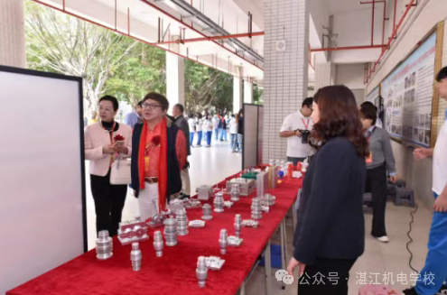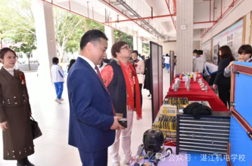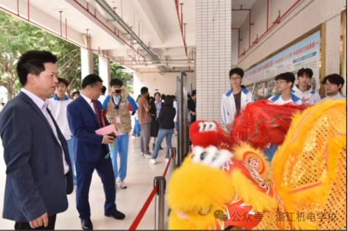 随后嘉宾们参观了校园及教学成果展。在无人机应用实践基地、VR实训室、新能源汽车与工业机器人人才培养基地,嘉宾们实地观摩了前沿技术教学场景;在教学成果展区,学生优秀作品、无人机表演、工业机器人舞狮、机电战车等创新展示,生动呈现了学校丰硕的育人成果与学子昂扬的技能风采。