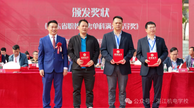 大会进入揭牌与颁奖环节,现场气氛再掀高潮。“广东省高水平中职学校”牌匾的亮相,标志着学校办学水平迈上新台阶。随后举行的湛江市“四名”工作室主持人授牌仪式,彰显了学校师资队伍建设的丰硕成果。