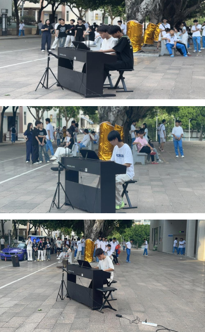 器乐社的精彩演绎成为活动亮点。钢琴演奏《晴天》以细腻动人的旋律赢得掌声;赛博吉他弹唱《花海》创新融合传统与现代元素;特别值得一提的是《路小雨》四手联弹钢琴,以默契的配合和精湛的技艺将演出推向高潮;《说了再见》《起风了》等曲目同样展现了器乐社成员的深厚功底。